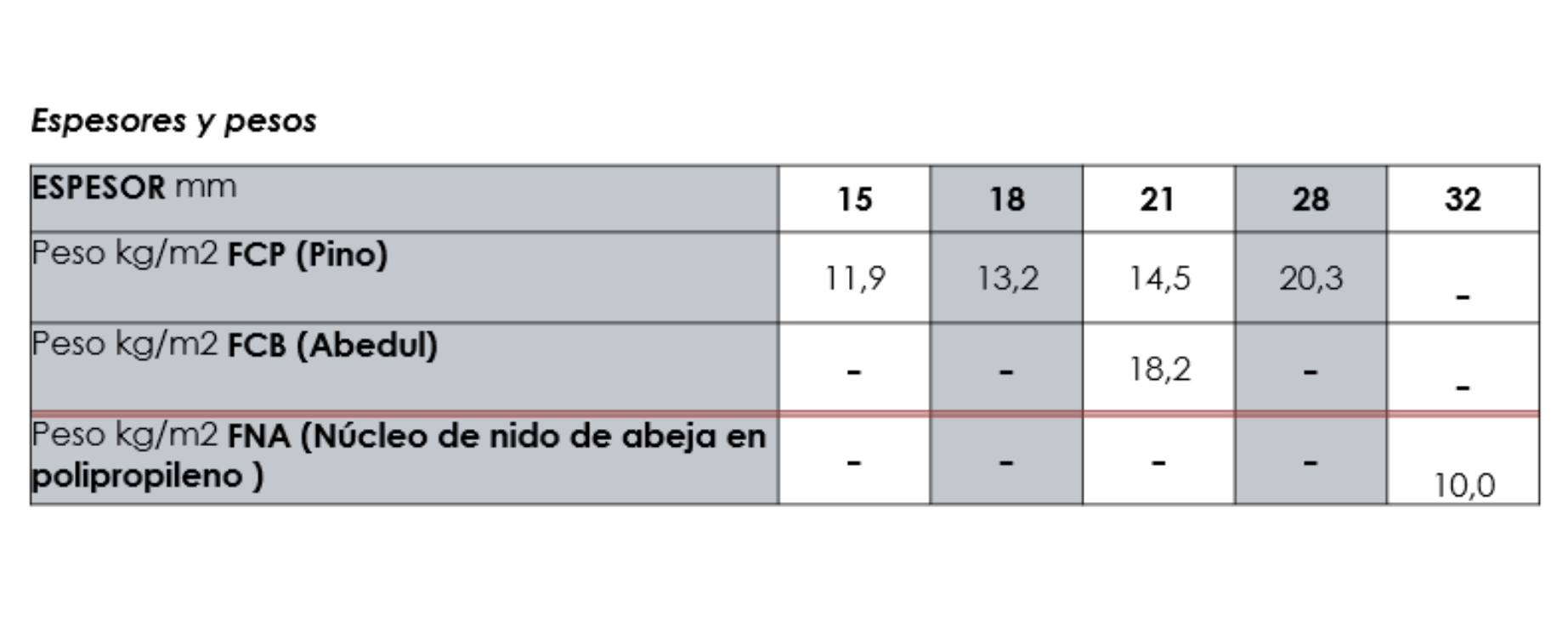 FNA (Núcleo de nido de abeja) : 2500 g/m2
